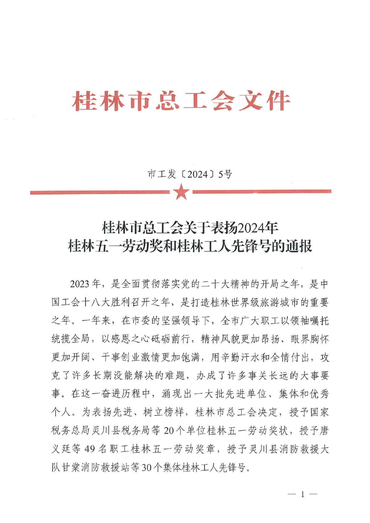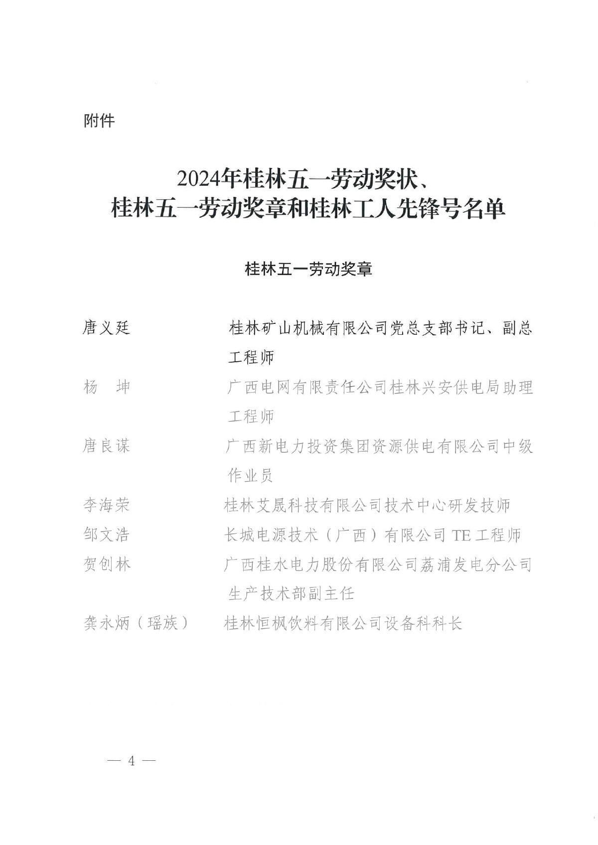 為表揚先進、樹立榜樣。近日,桂林市總工會發(fā)文關(guān)于表揚2024年桂林五一勞動獎和桂林工人先鋒號的通報,決定授予唐義廷等49名職工桂林五一勞動獎?wù)隆?